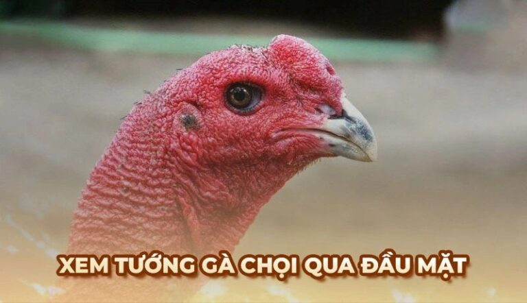 Xem tướng gà chọi qua phần mặt có hình dạng như một tam giác, tạo cảm giác mạnh mẽ và hung dữ. Da mặt của chiến kê có màu đỏ bóng, với các nếp nhăn rõ ràng, má phình ra, gáy dài và đầu gà thường chui vào dưới, trong khi phần tảng lồi ở trên đầu thì nổi bật.